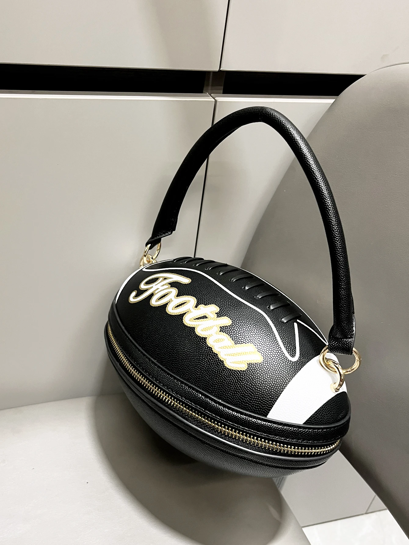 Elegância com atitude. A bolsa "Touchdown" une o visual esportivo de uma bola de futebol americano ao acabamento sofisticado do couro sintético preto. O resultado é um acessório urbano, moderno e impactante, ideal para quem não abre mão de estilo e originalidade.