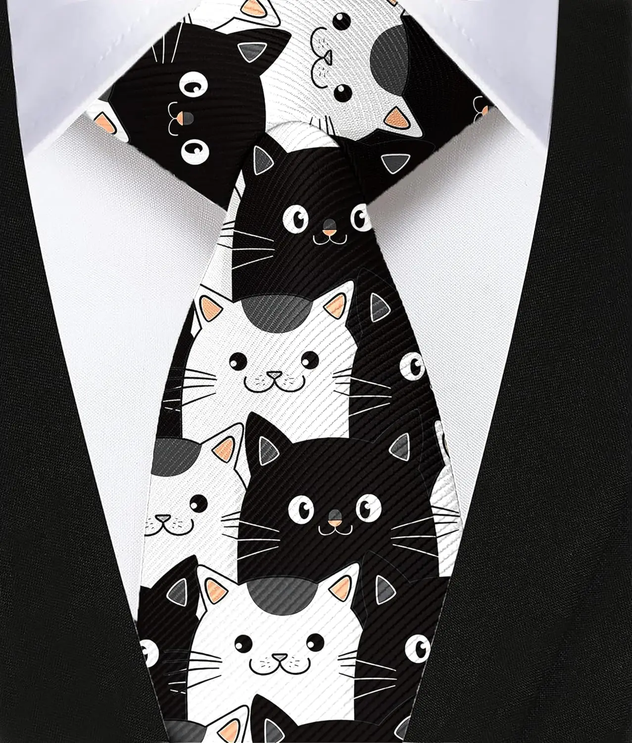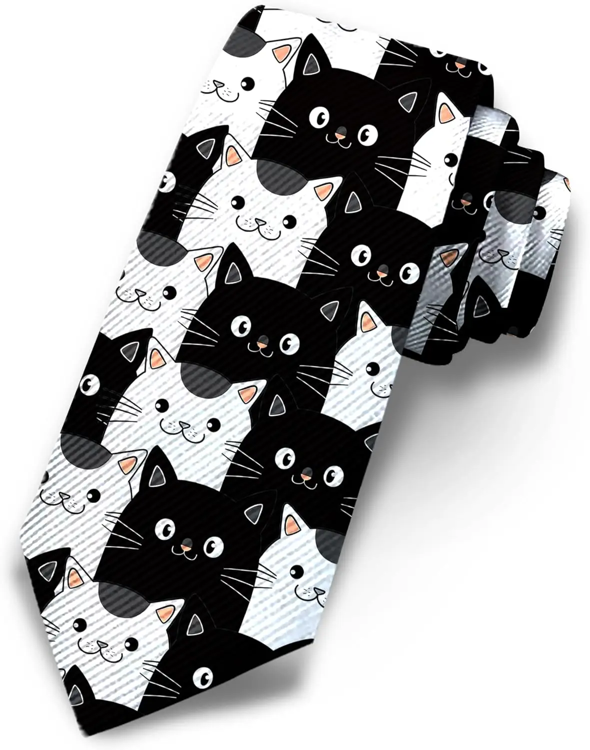 Para quem curte moda com um toque de humor e afeto felino. A gravata "Cat Lover" combina o visual minimalista em preto e branco com estampa fofa de gatinhos, ideal para looks casuais criativos ou para quem gosta de se destacar com autenticidade. Uma peça leve, divertida e elegante que transforma qualquer camisa básica em um statement fashion.