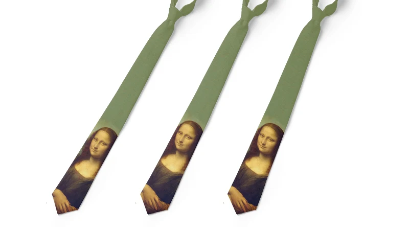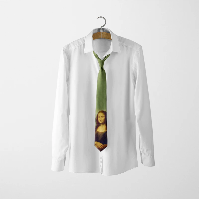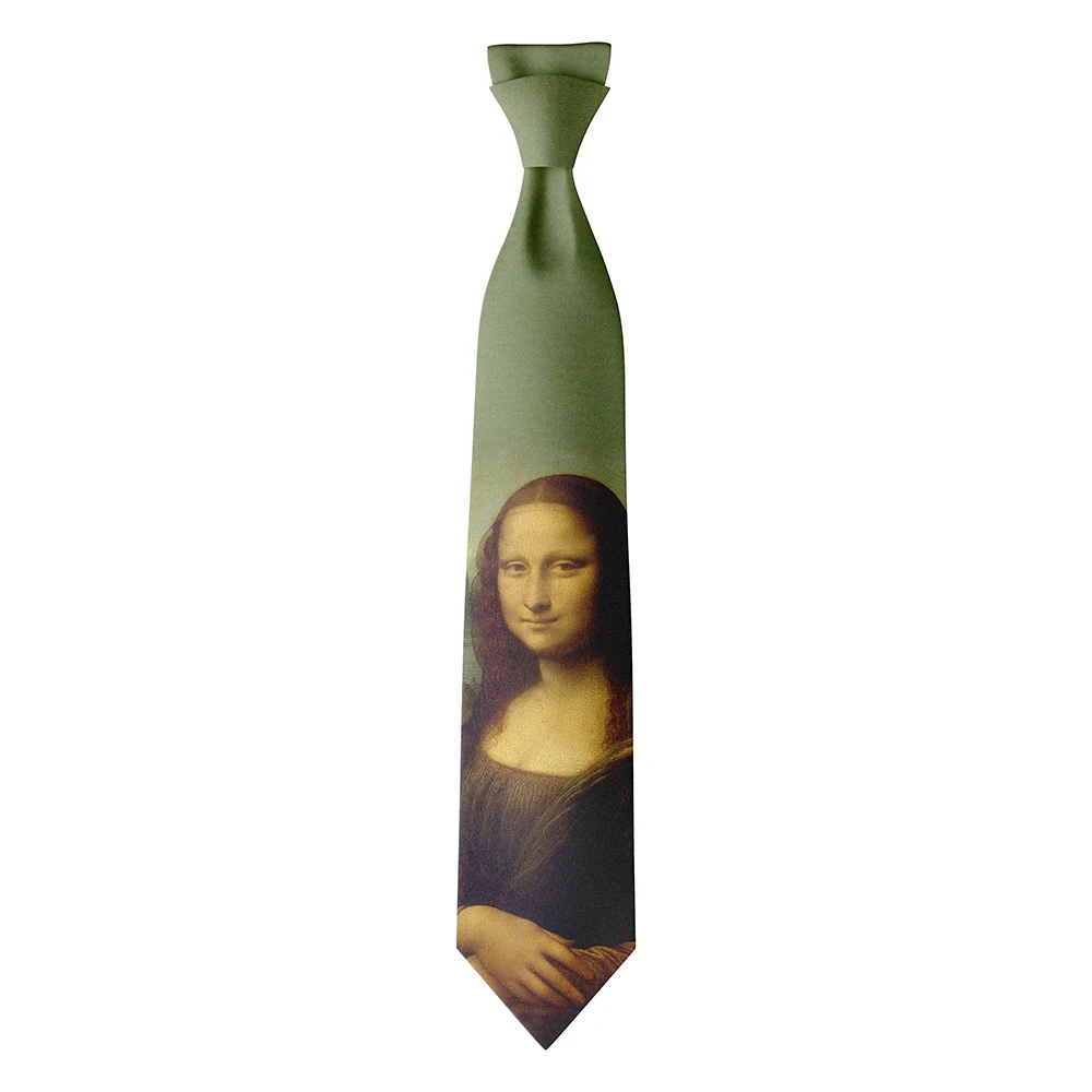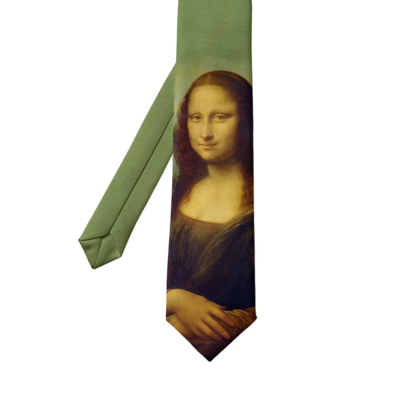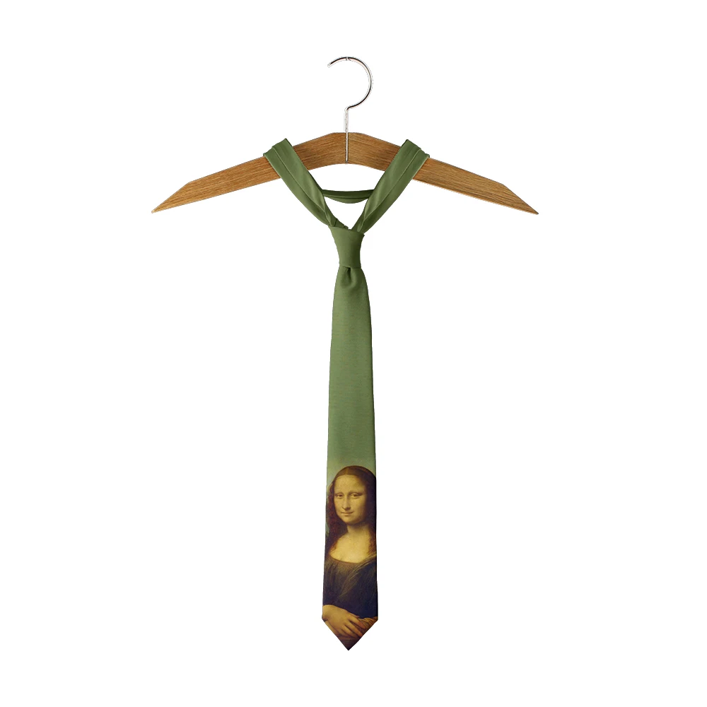 Para quem busca unir elegância com personalidade. Esta gravata traz a icônica obra Mona Lisa em uma impressão vívida sobre fundo verde oliva, oferecendo um toque artístico e moderno ao visual formal. Ideal para eventos, encontros ou para destacar-se com sofisticação no dia a dia. Um acessório ousado com acabamento refinado.